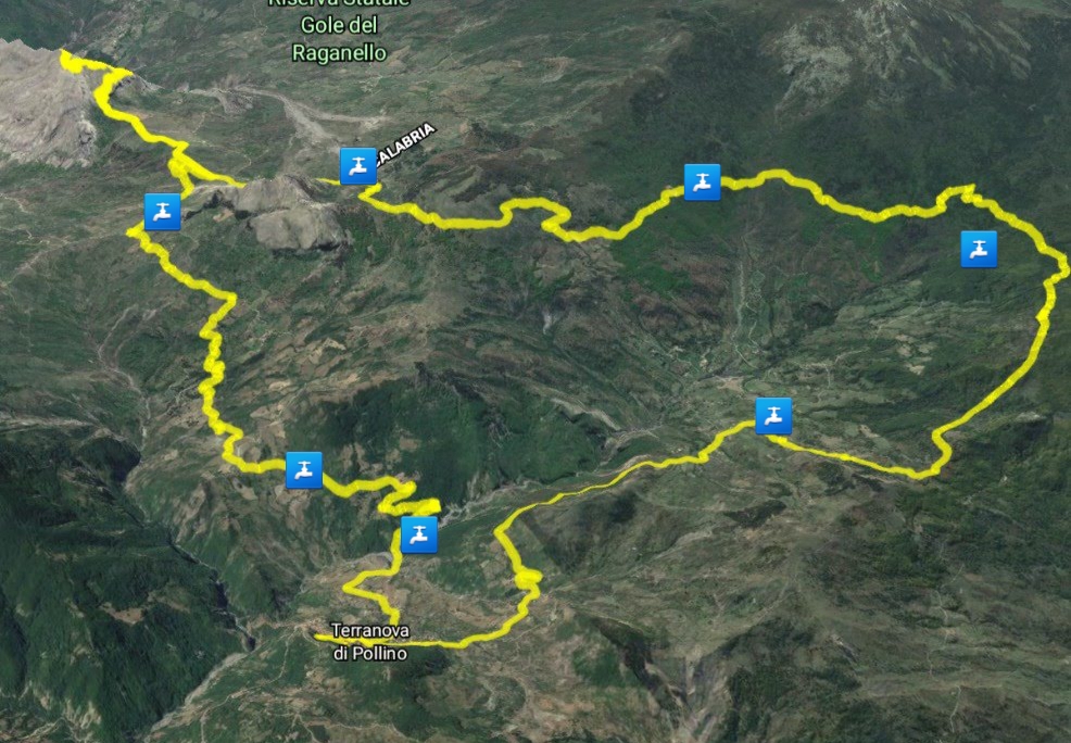 DESCRIZIONE: Si parte dal Centro abitato di Terranova di Pollino in direzione della Frazione di “ Destra delle Donne”. Dopo un primo tratto su in discesa su strada asfaltata, si inizia a salire con pendenze abbastanza sostenute. Dopo circa 4 km , superata una fontana sulla sinistra , si trova un incrocio. Se si continua verso destra la strada continua con asfalto , mentre a sinistra, superata la vecchia scuola della Frazione, si prosegue in salita su strada sterrata con pendenza abbastanza sostenuta. L’ itinerario ritorna poi su asfalto in direzione di ” Serra Scorsillo” linea di confine tra Basilicata e Calabria.