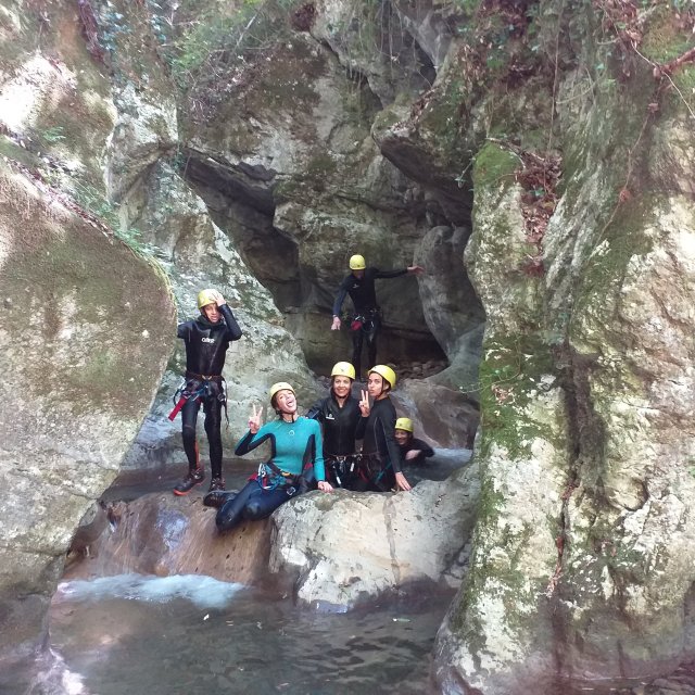 (Oltre ad un bellissimo percorso escursionistico che porta ad ammirare le cascate più suggestive due sono gli ingressi per la pratica del canyoning. La parte alta é caratterizzata da verticali più importanti con calate su corda, mentre la parte bassa é leggermente più acquatica lasciando spazio anche a tanti tuffi .)