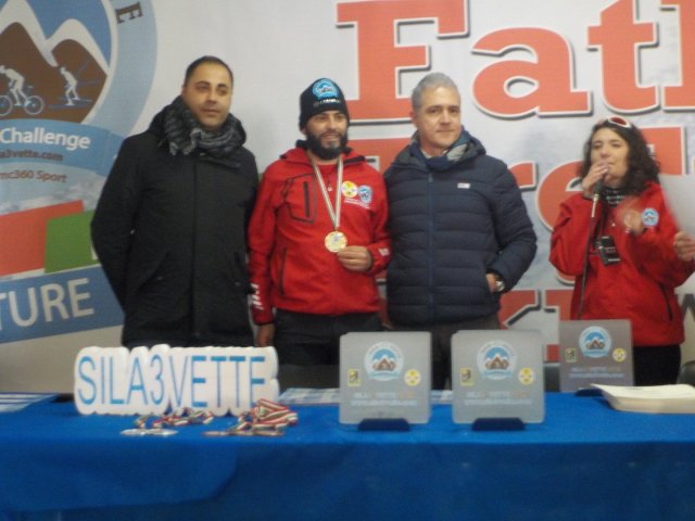 Firma e ristoro, chiedo a Maurizio Angella di controllare la posizione del secondo e mi dice che sta arrivando. Daniele deve aver corso tantissimo e forte per tenere il ritmo di uno sciatore. Ci rincontriamo, gli dico : ” ci vediamo più avanti ” e mi risponde : “credo proprio all’arrivo” . 3 km di ferrovia, (non come l’ anno scorso che ne ho fatti sei saltando l’ incrocio) , vado come un treno, sui binari ricoperti di neve ghiacciata riesco a spingere e finalmente a sciare, becco l’incrocio e sorpresa: 3k di camminata nel fango! Alla fine rimetto gli sci e mi impongo un ritmo abbastanza elevato complice anche una vecchia traccia di motoslitta che mi permette di sciare. Arrivo all’ ultimo checkpoint intorno alle 8 di mattina, velocissimo saluto Giuseppe e riparto per gli ultimi interminabili 9km ma con la consapevolezza di avere la vittoria a portata di mano. Gli ultimi km sono una danza, neve fantastica mi permette di sciare con un gesto da fondista esperto. Discese, curve e qualche caduta mi riportano nel tratto finale…sento le voci, alzo le braccia al cielo e la terza edizione della sila3vette ritorna nelle mie mani. All’ arrivo Silvia, che mi ha seguito e aspettato tutta la notte e gli amici a complimentarsi con me. Daniele arriverà circa mezz’ora dopo. Non ci siamo più visti, avrei voluto fargli i complimenti per la determinazione e la tenacia che ha dimostrato.