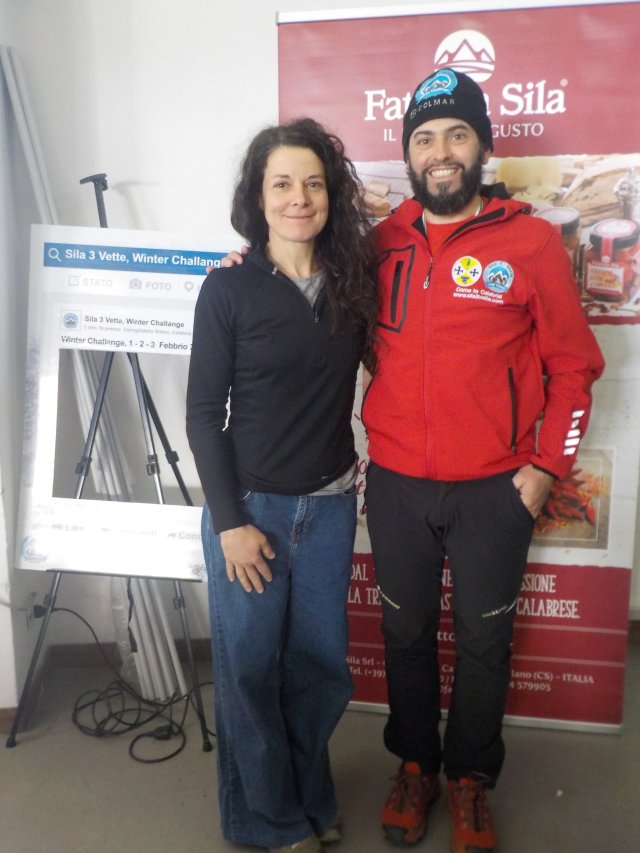 Arrivo a Camigliatello prima di pranzo di venerdì 1 febbraio, insieme alla mia compagna Silvia che anche quest’ anno ha deciso di seguirmi e di supportarmi. Do uno sguardo alla condizione della neve e capisco che la gara sembra essere favorevole al mio assetto. La mia premessa era stata quella di gareggiare ma di non strafare, perché la mia vera gara parte il 18 Febbraio in Alaska, iditasport original http://www.iditasport.com .Dopo l’ iscrizione, un ottimo pranzo e riunione pre gara, qualche ora in albergo per preparare lo zaino e un eventuale riposo, cosa che come ogni volta mi riesce poco! La voglia di partire è troppa. Rito ufficiale prima della partenza con i politici e alle 19:15 partenza. Due km di asfalto con sci in spalle, bikers e corridori partono forti. La gara è lunga, sono sereno e parto deciso a passo veloce senza correre. Inizia la neve e si parte con gli sci,la pista è battuta e salgono tutti abbastanza spediti, le bici rallentano e gli sci Alpinisti dettano il passo,arranco con una tenuta che non è ottimale e penso che sarei dovuto partire con le pelli. Generalmente i primi km soffro sempre,il mio motore è un vecchio diesel di quelli aspirati che solo una volta caldo inizia a macinare km. Nonostante le difficoltà di tenuta non riesco a mantenere la promessa di andare piano, inizio un crescendo di ritmo che mi porta a superare tanti concorrenti. Capisco dalle tracce dopo circa un’ora di salita di avere davanti uno sciatore e due che corrono a piedi, ma vanno proprio forte penso!!!