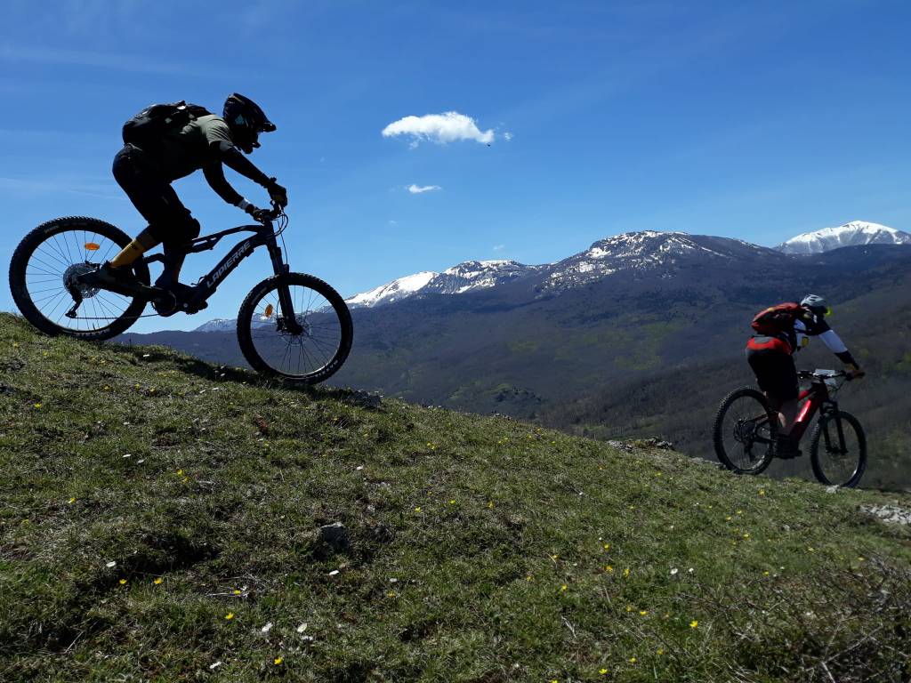 SnowBike: L’ Unione delle competenze sciistiche e ciclistiche trova la massima espressione in questa disciplina adrenalinica ed entusiasmante adatta a ciclisti di medio livello che desiderano migliorare le tecniche di guida su terrano impegnato. In particolari condizioni di neve è possibile vivere questa avventura in massima sicurezza con professionisti del settore . Il pacchetto Base mezza giornata comprende :Guida , Noleggio Ebike e assistenza