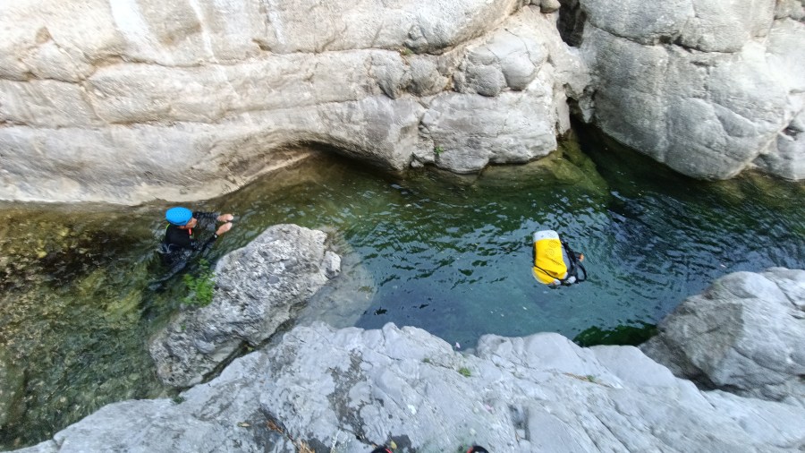 Le attrezzature a noleggio permettono a differenza del River Trekking di immergersi e tuffarsi in vasche cristalline . Naturalmente è richiesto di saper nuotare. Forniamo attrezzature per proteggersi dal freddo ( Mute e Calzari) dagli urti ( Casco ) e aiuto al galleggiamento .
